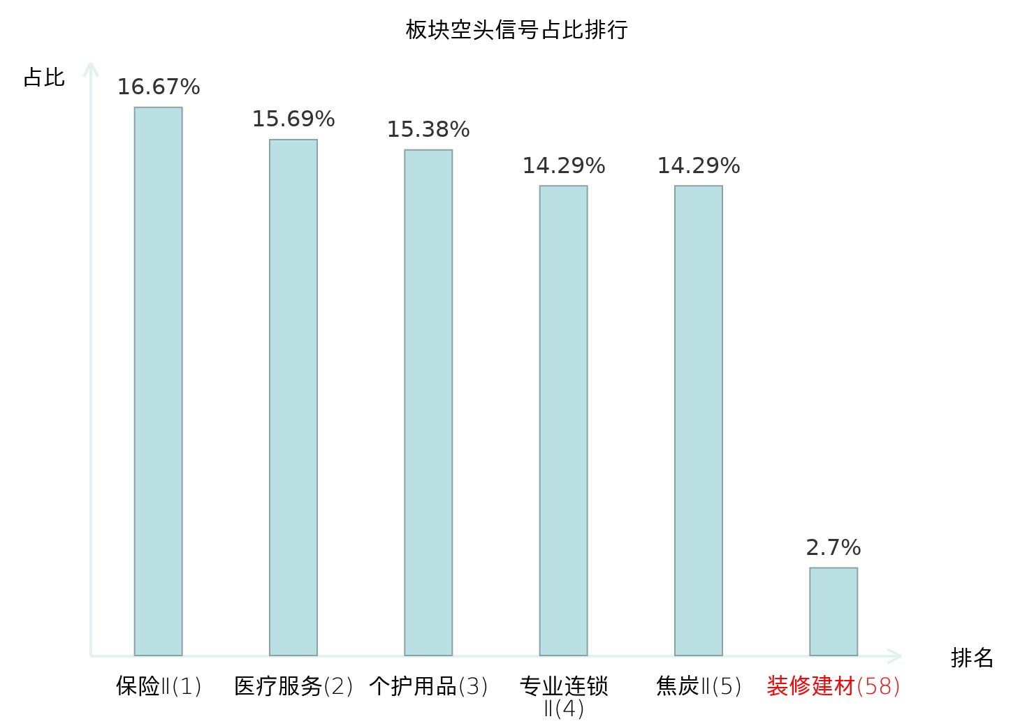 全市场所有行业板块中主力空头信号占比排名中,保险Ⅱ板块位居第一。航运港口板块名次提升最快,较昨日上升114位。