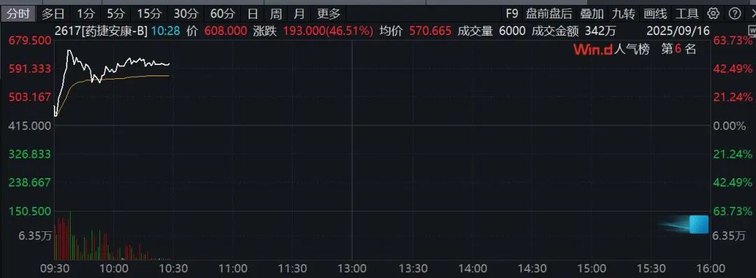 港股医药股盘中走高,药捷安康-B一度涨超50%,同源康医药-B、维立志博-B涨幅居前。