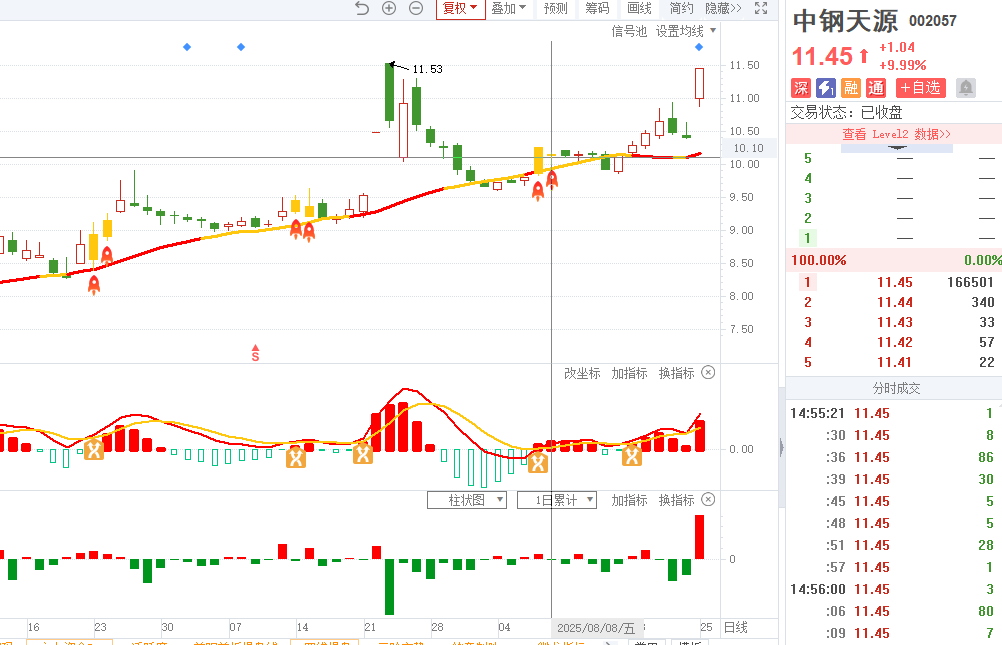 2)20250808-中钢天源-四维操盘-近期出现火箭信号且底部量柱由绿转红