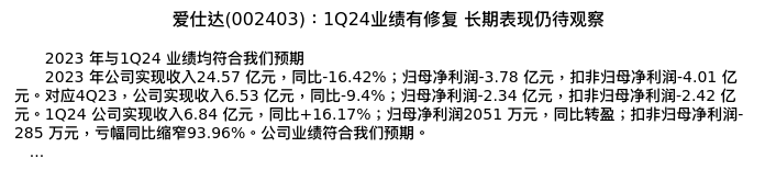 值得注意的是:2024年04月中金公司的汤胄樱子/何伟分析师,首次发布关于爱仕达的研究报告,标题为:爱仕达(002403):1Q24业绩有修复 长期表现仍待观察。