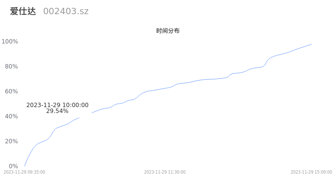 002403爱仕达2023年11月29日成交3.00万手,成交金额2669.87万元,相较昨日放量4118手,换手率0.98%,成交清淡。