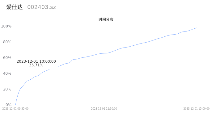 根据成交分布分析,该股票当天缩量成交,成交清淡。时间上看,早盘前半小时成交量占据当天总成交量的35.71%;价格上看,成交呈现右偏峰。成交分布分析主要研究股票成交的分布特性,不具有预测功能,请知悉。
