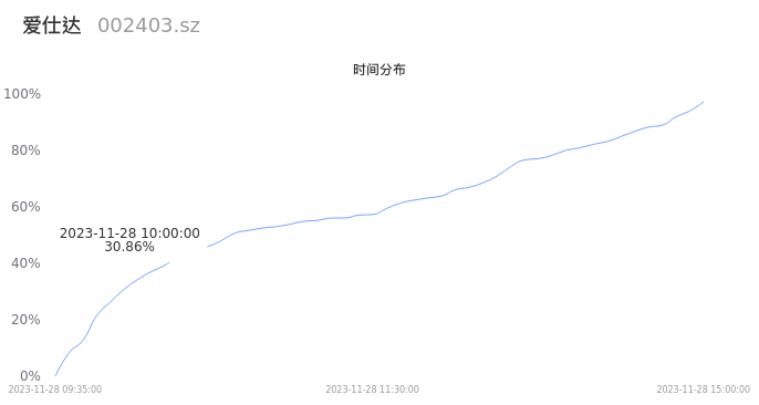 根据成交分布分析,该股票当天缩量成交,成交清淡。时间上看,早盘前半小时成交量占据当天总成交量的30.86%;价格上看,成交呈现右偏峰。成交分布分析主要研究股票成交的分布特性,不具有预测功能,请知悉。