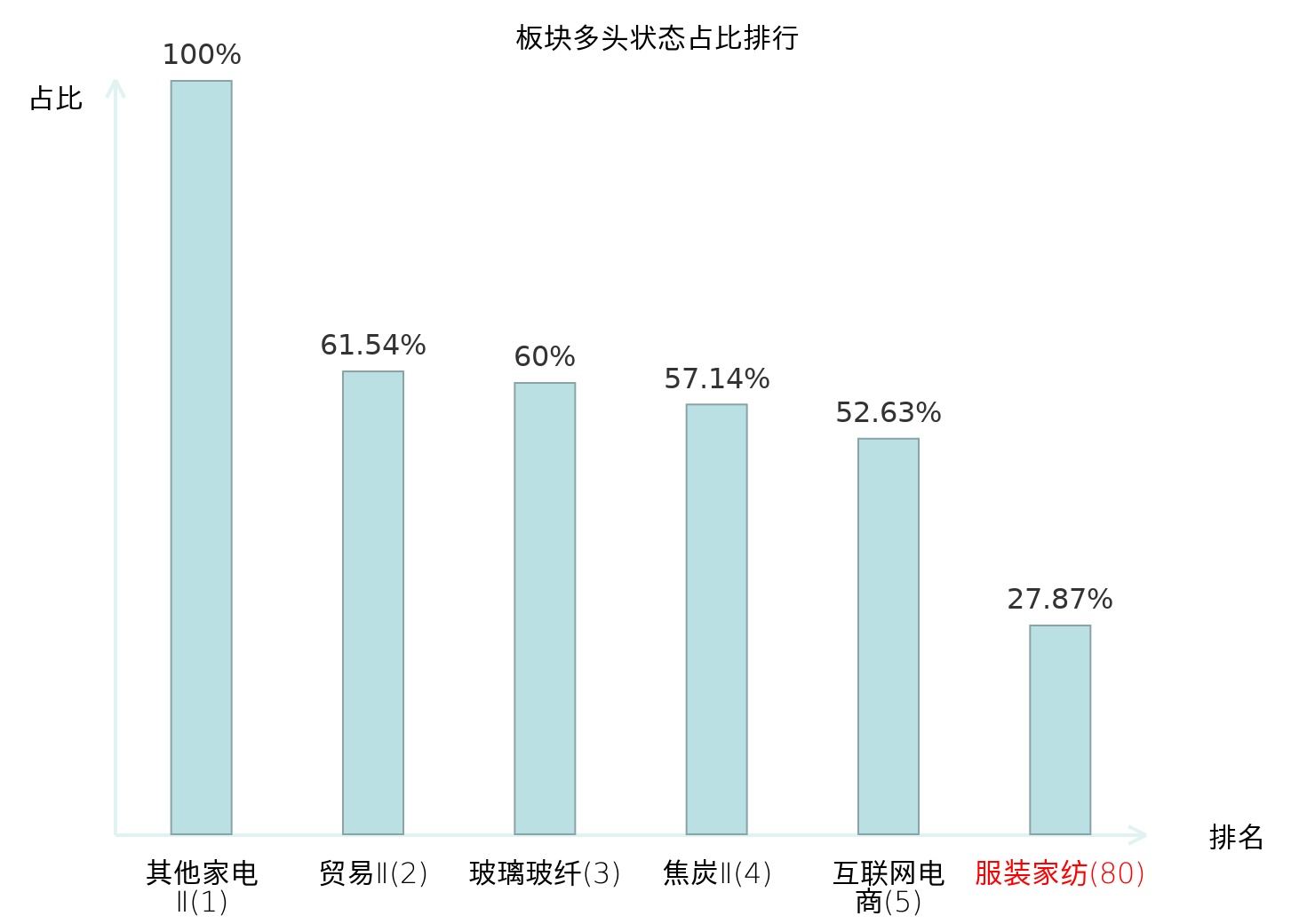全市场所有行业板块中主力多头状态占比排名中,其他家电Ⅱ板块位居第一。教育板块名次提升最快,较昨日上升50位。