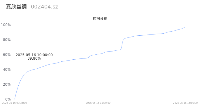 002404嘉欣丝绸2025年05月16日成交46.04万手,成交金额2.98亿,相较昨日缩量24.15万手,换手率10.10%,成交活跃。