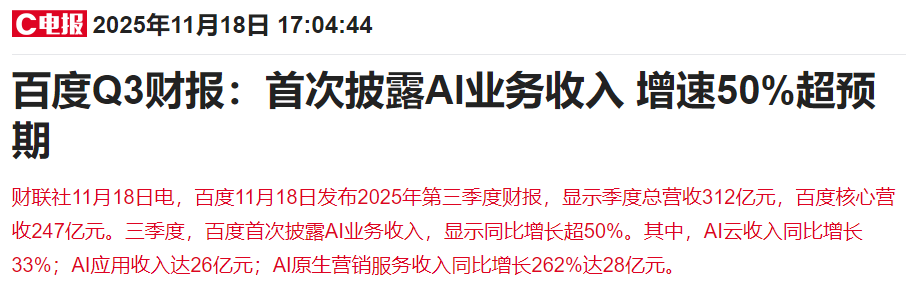 至于今天AI应用软件,这个位置看浪潮软件明天能否走3板,今天2板已经被顶,如果接下来继续超预期,那么AI应用软件方向的个股依然还有继续攀升。上周腾讯公布业绩亮眼,今天百度也公布三季度财报,AI业务收入增长超50%,超预期,这也对明天的AI软件应用方向是一个数据上的利好,再观察一下晚间美股这边科技股情况如何。