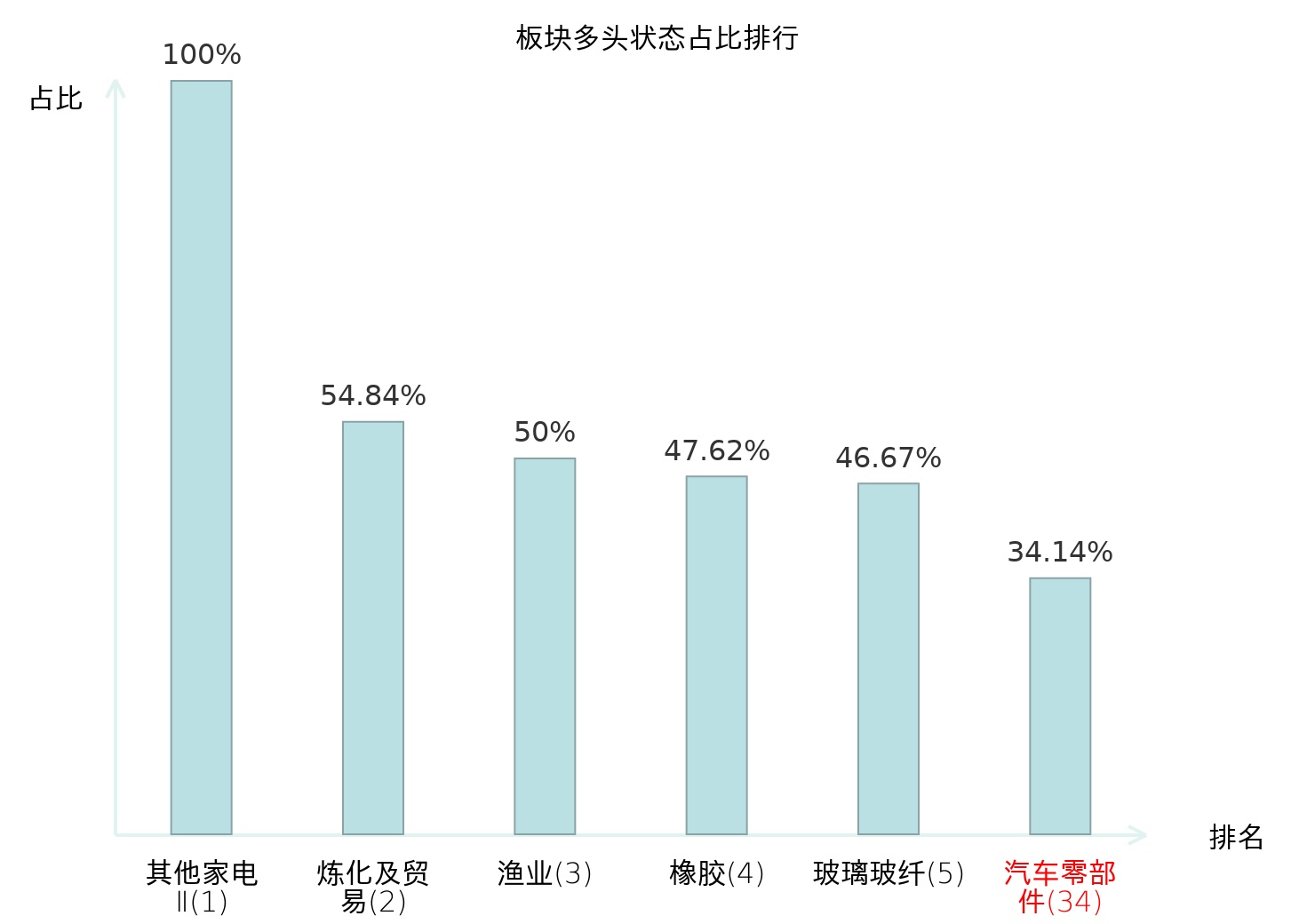 从主力宝信号数据分析,远东传动所属的汽车零部件板块中共有85只股票处于主力多头状态,主力多头状态占比在全行业中排名第34位,较昨日上升6位。较高的排名表明主力对于该板块整体看多意愿较强,此次排名上升进一步反映了主力对于该板块态度的积极变化。全市场所有行业板块中,其他家电Ⅱ板块的主力多头状态占比最高,位居第一。铁路公路板块名次提升最快,较昨日上升37位。这些变动揭示了不同行业间主力资金偏好的变化,为投资者提供了关于市场情绪和潜在投资机会的重要线索。