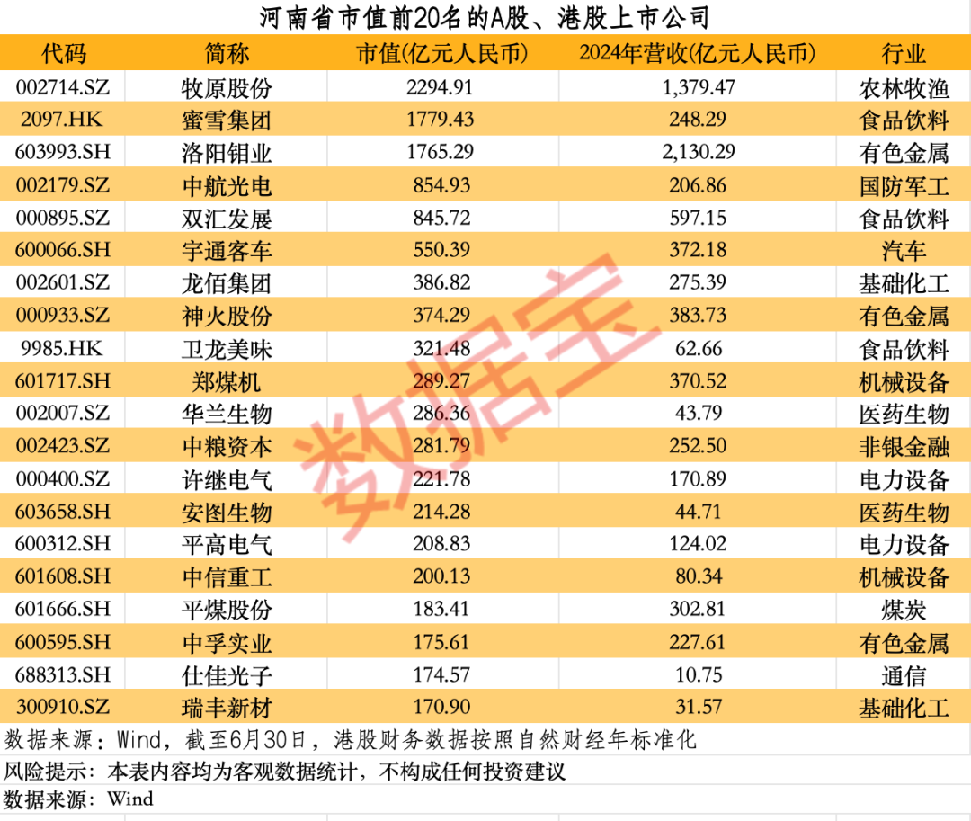 需要补充的是,蜜雪集团于2025年3月在港股上市,目前已成为中部六省港股市值之首。蜜雪集团的上市有望加速河南资产证券化的进程,截至2025年6月30日,河南A股及港股总市值达到1.76万亿元人民币,位列中部六省第二位,其中蜜雪集团位居河南A股及港股市值第2位,超过1950亿港元(约1779.43亿元人民币)。