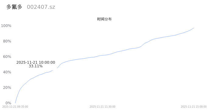 002407多氟多2025年11月21日成交218.57万手,成交金额72.18亿,相较昨日缩量4.47万手,换手率20.23%,成交活跃。