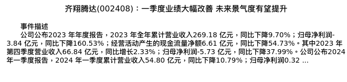 值得注意的是:2024年05月长江证券的魏凯/侯彦飞/张韦华分析师,首次发布关于齐翔腾达的研究报告,标题为:齐翔腾达(002408):一季度业绩大幅改善 未来景气度有望提升。