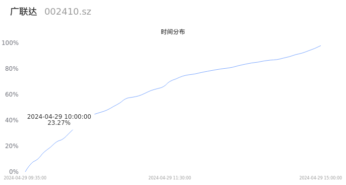 002410广联达2024年04月29日成交45.18万手,成交金额5.15亿元,相较昨日放量6.21万手,换手率2.84%,成交清淡。