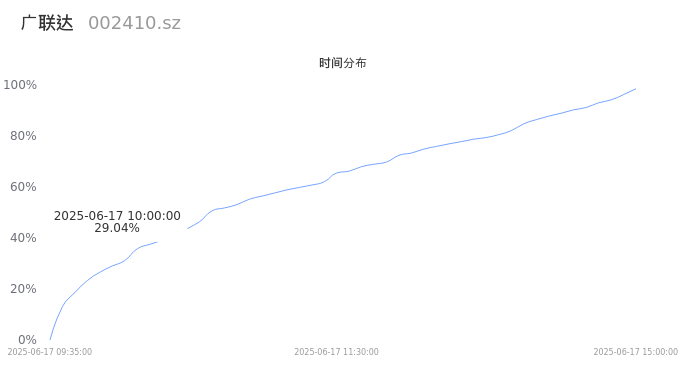 002410广联达2025年06月17日成交16.94万手,成交金额2.30亿,相较昨日缩量7.99万手,换手率1.07%,成交清淡。