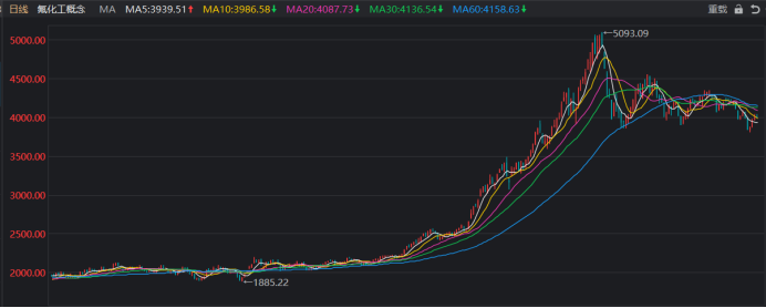 今年以来,受益于产品价格上涨与以磷化工为代表切入新能源材料端的企业业绩暴涨,化工类各子板块均大幅上涨,截止今日(12月30日)收盘,磷化工、氟化工年内涨幅分别达98.7%、97.3%,尤其以三季度的涨势最为凌厉,进入四季度后,化工板块陷入持续震荡。