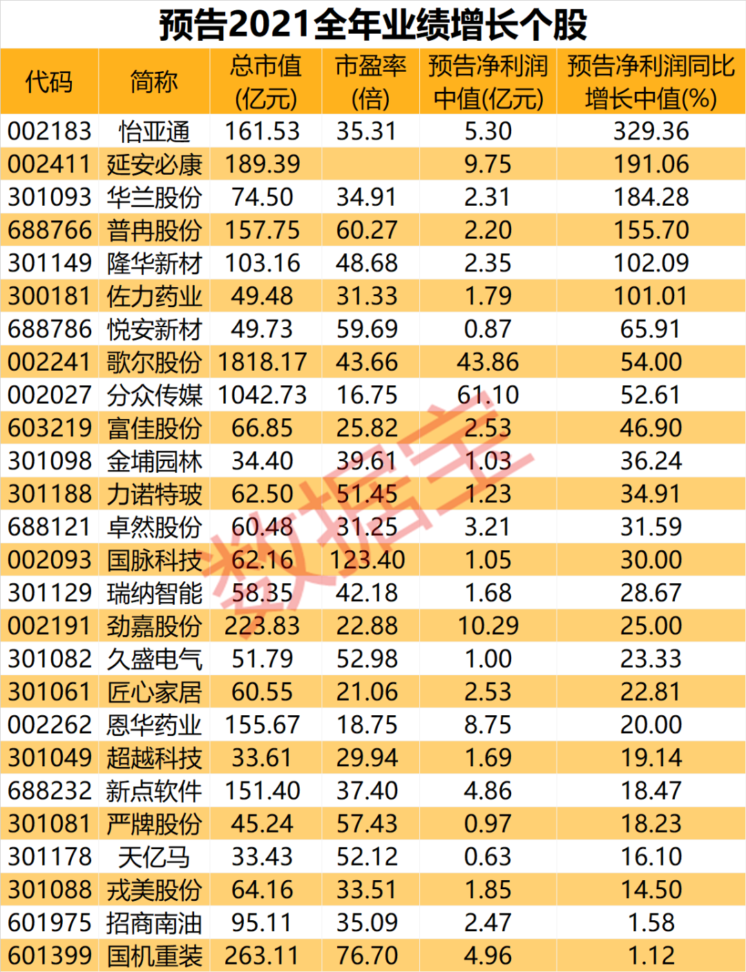 从净利润预增幅度看,怡亚通、延安必康、华兰股份、普冉股份、隆华新材和佐力药业6股净利润增幅中值逾100%;悦安新材、歌尔股份和分众传媒净利润增幅中值落在50%-100%。