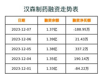 综上,汉森制药当前两融差额为1.37亿,近5个交易日累计上升2.7%