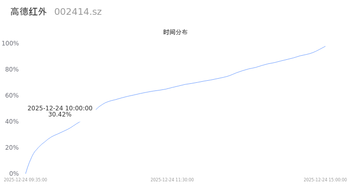002414高德红外2025年12月24日成交152.81万手,成交金额23.55亿,相较昨日缩量103.66万手,换手率4.50%,成交清淡。