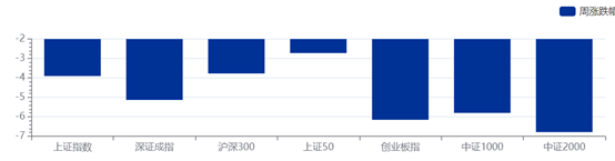 上周,主要权益指数回调。上证50下跌2.72%,创业板指下跌6.15%,中证1000、中证2000分别下跌5.80%、下跌6.78%。涨幅靠前的行业板块是银行、传媒、食品饮料,跌幅靠前的是电力设备、综合、基础化工。
