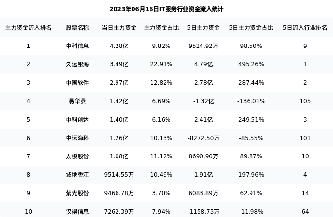 从主力资金流向来看,IT服务行业今日主力资金流入237.37亿元,在所有申万二级行业中排名:90/131。