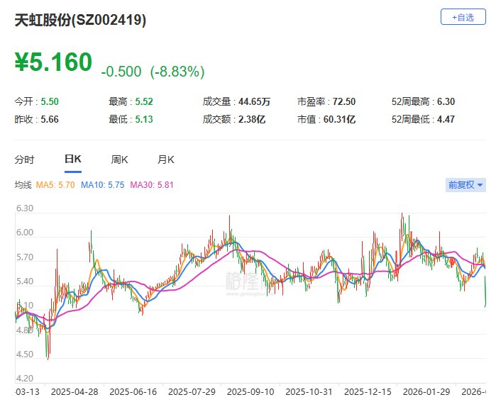 A股异动丨天虹股份跌逾9% 股价创约9个月新低
