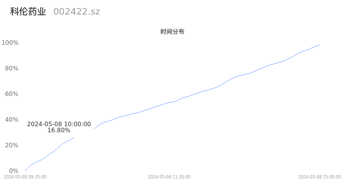 002422科伦药业2024年05月08日成交15.34万手,成交金额5.16亿元,相较昨日放量7778手,换手率1.17%,成交清淡。