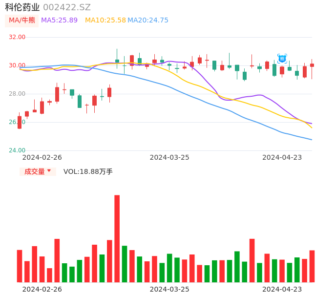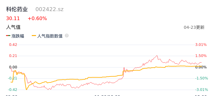 04月23日,科伦药业收报30.11,股价涨幅0.60%,成交金额5.61亿元,换手率1.44%。