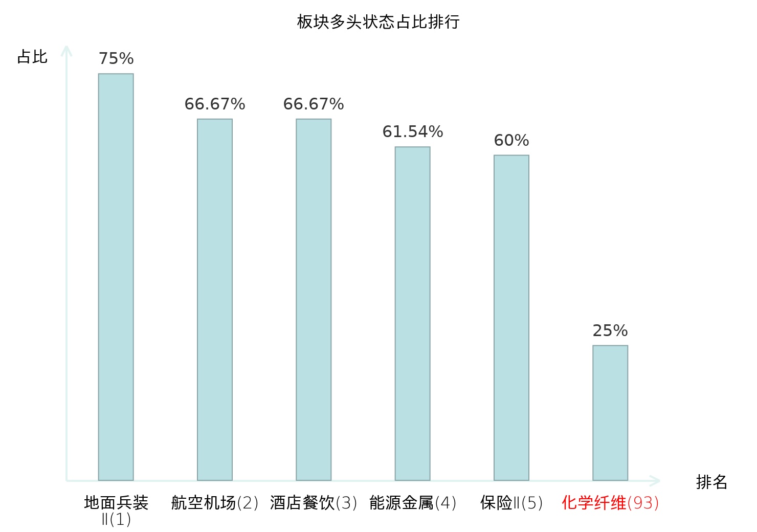 全市场所有行业板块中主力多头状态占比排名中,地面兵装Ⅱ板块位居第一。航天装备Ⅱ板块名次提升最快,较昨日上升103位。