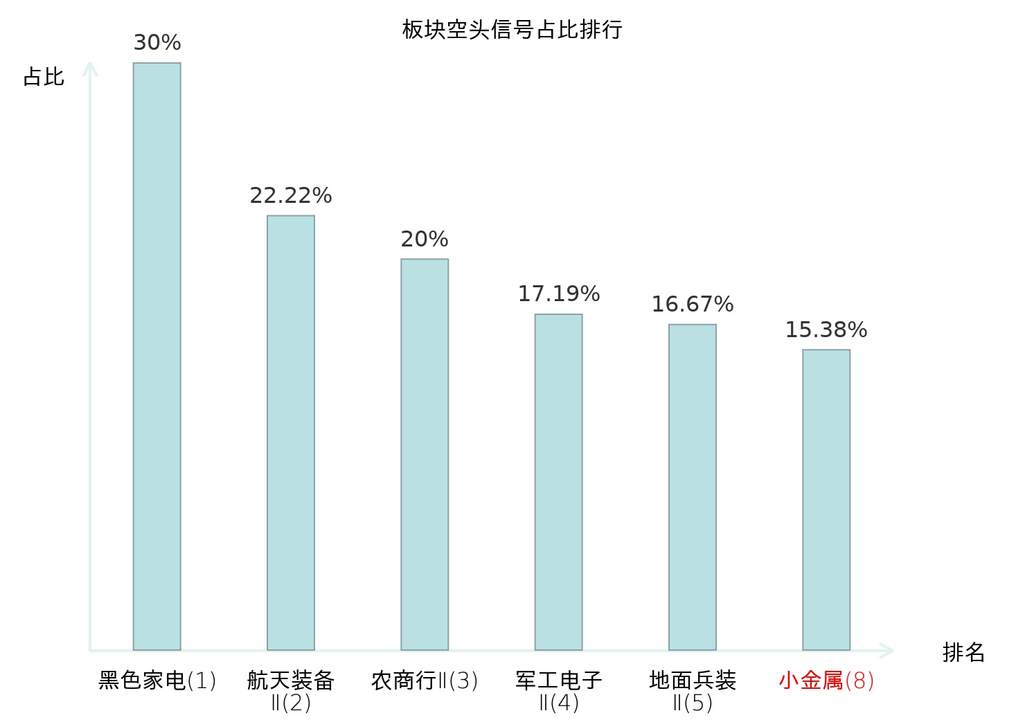 从主力宝信号数据分析,云南锗业所属的小金属板块中共4只股票发出主力空头信号,主力空头信号占比在全行业中排名第8位,较昨日上升21位;较高的排名表明主力对该板块整体卖出意愿较强,此次排名显著上升可能反映了主力对该板块态度的阶段性强化;全市场所有行业板块中主力空头信号占比排名中,黑色家电板块位居第一;航空装备Ⅱ板块名次提升最快,较昨日上升120位;这些变动揭示了不同行业间主力资金倾向的差异化调整,为投资者评估市场压力分布及潜在风险区域提供了客观依据。