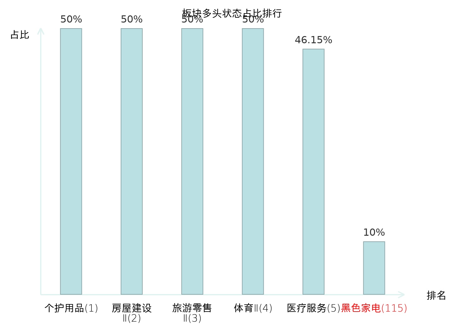 全市场所有行业板块中主力多头状态占比排名中,个护用品板块位居第一。影视院线板块名次提升最快,较昨日上升56位。