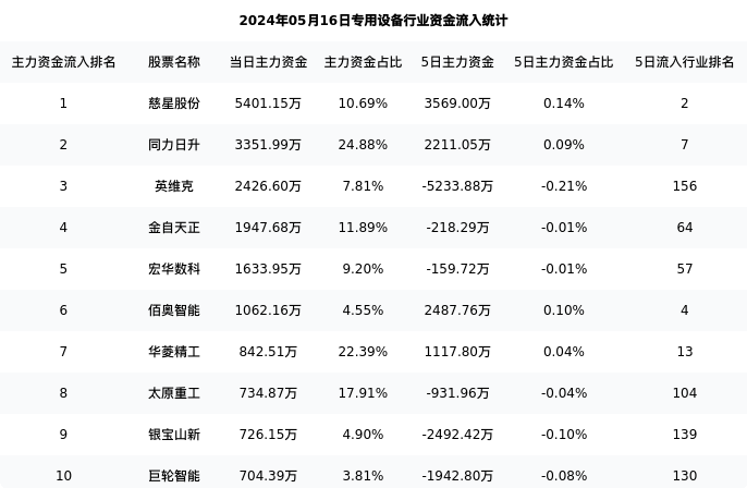 从主力资金流向来看,专用设备行业今日主力资金流入35.87亿元,在所有申万二级行业中排名:71/131。