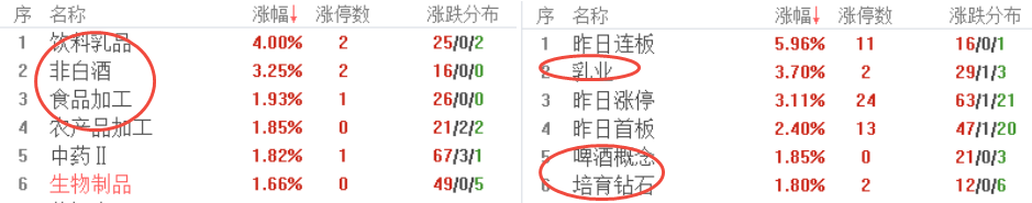 涨跌表现来看,上涨个股1700多家,涨停个股47家,较昨日略有提升。整体市场情绪一般,题材热点轮动较快。具体来说,新消费方向今日全面加速,已经出现高潮信号;抱团模式未退超,但低位切换的意愿很强。后续展望,如果以上两者的分化节点叠加的话,可能会出现一次较大的退潮。