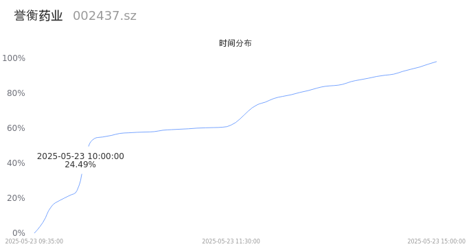 根据成交分布分析,该股票当天放量成交,成交活跃。时间上看,早盘前半小时成交量占据当天总成交量的24.49%;价格上看,成交呈现右偏峰。成交分布分析主要研究股票成交的分布特性,不具有预测功能,请知悉。