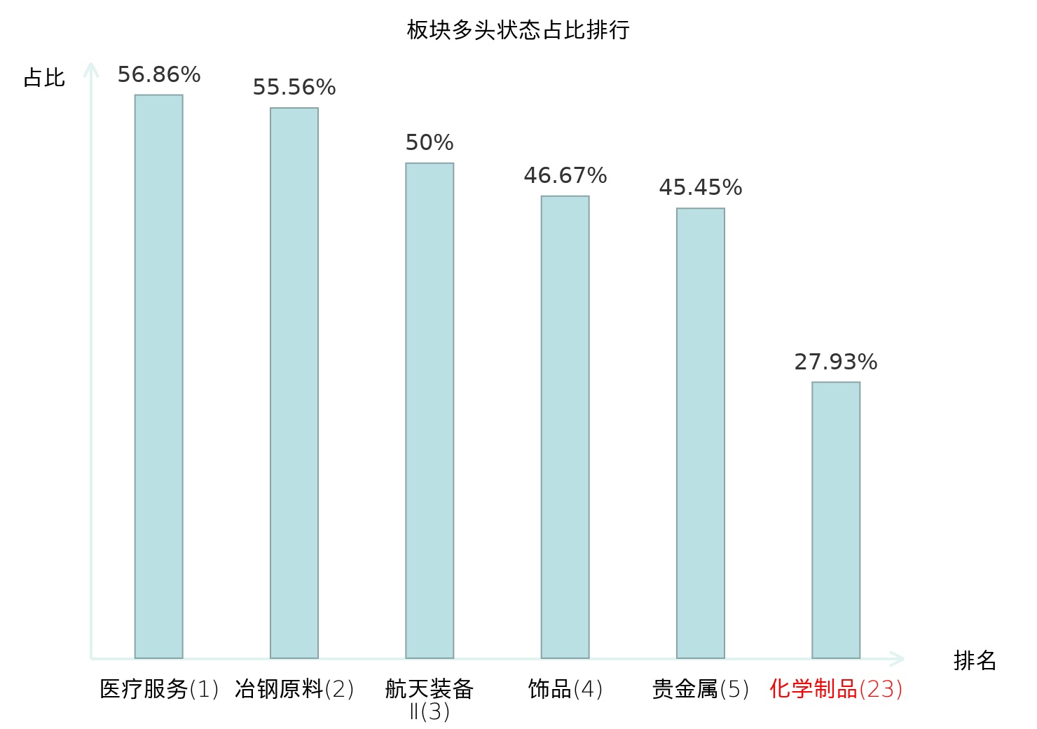 从主力宝信号数据分析,闰土股份所属的化学制品板块中共有50只股票处于主力多头状态,主力多头状态占比在全行业中排名第23位,较昨日上升3位。较高的排名表明主力对于该板块整体看多意愿较强,排名的提升可能反映了主力对板块信心的增强。全市场所有行业板块中,主力多头状态占比排名中,医疗服务板块位居第一;旅游及景区板块名次提升最快,较昨日上升61位。这些变动揭示了不同行业间主力资金流向的趋势,为投资者提供了关于市场情绪和潜在投资机会的重要线索。