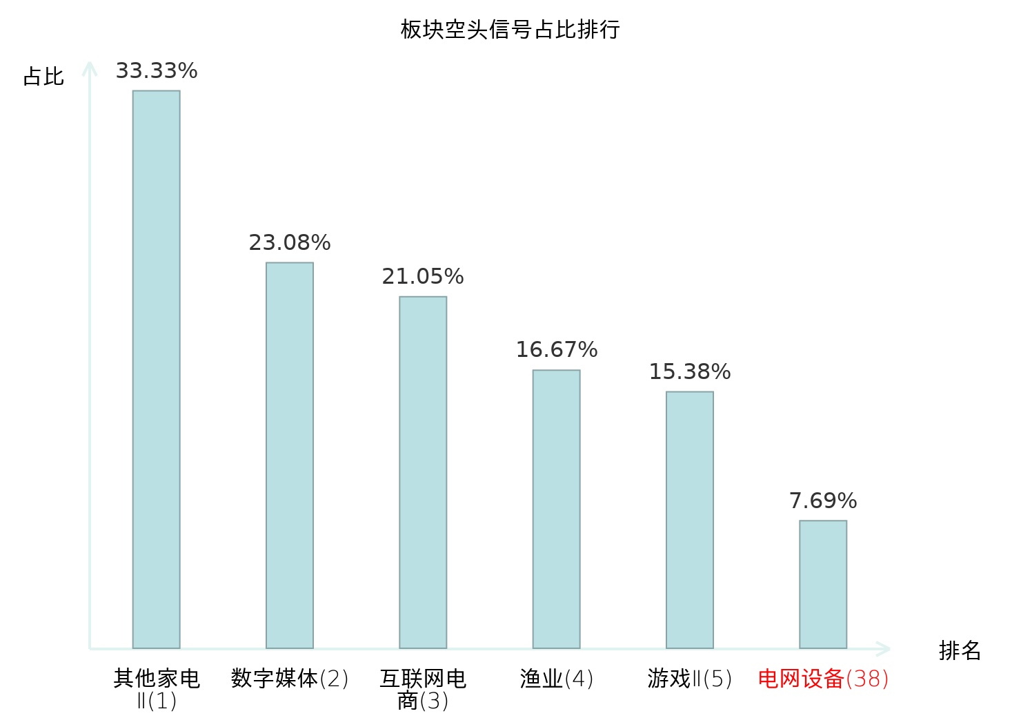 全市场所有行业板块中主力空头信号占比排名中,其他家电Ⅱ板块位居第一。化学纤维板块名次提升最快,较昨日上升103位。