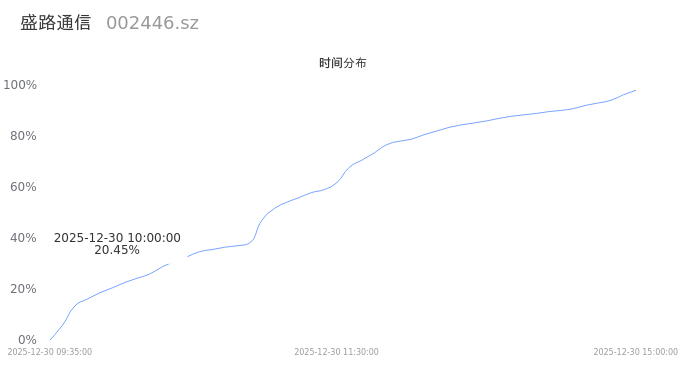 002446盛路通信2025年12月30日成交144.27万手,成交金额14.96亿,相较昨日放量49.49万手,换手率17.02%,成交活跃。
