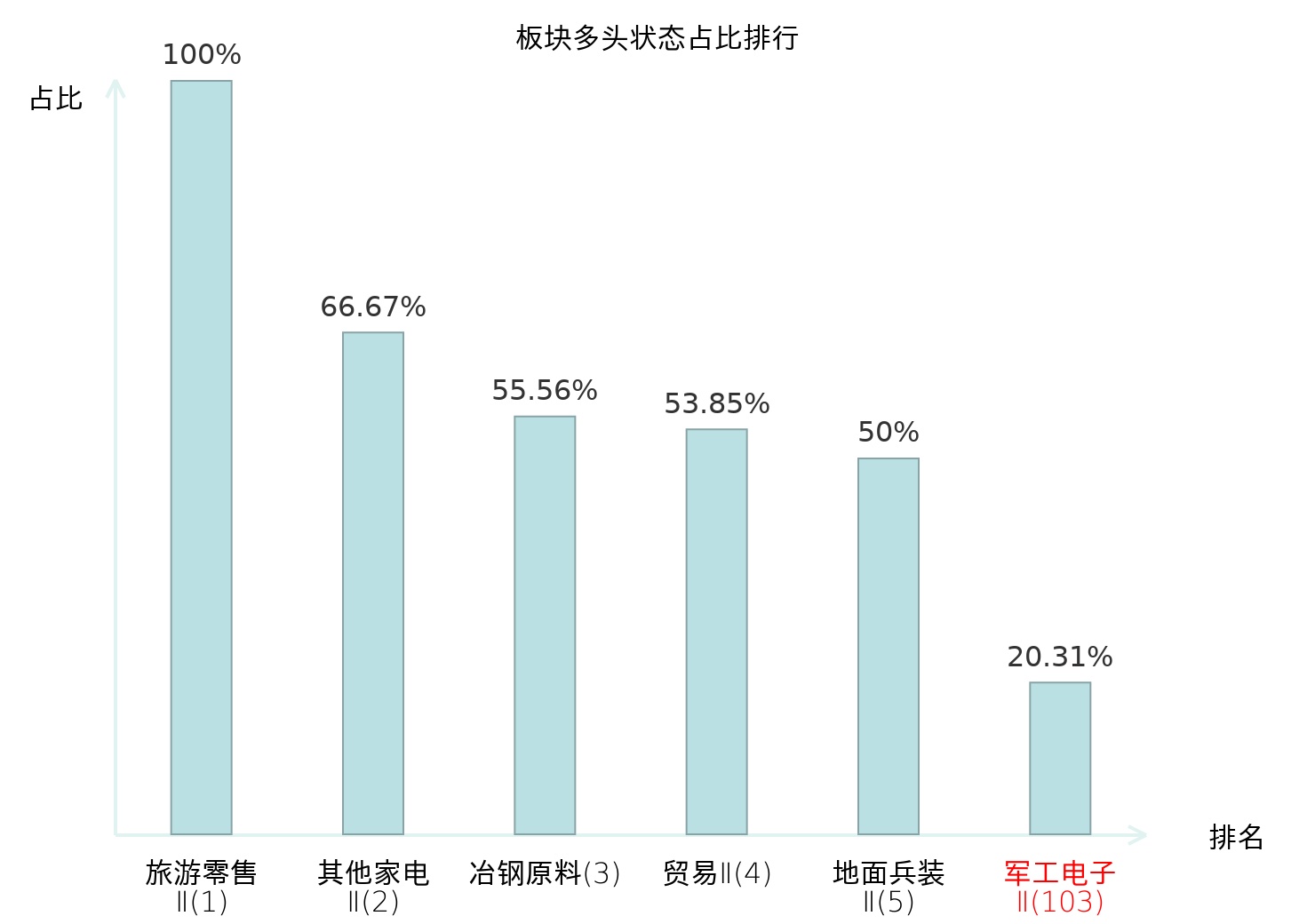 全市场所有行业板块中主力多头状态占比排名中,旅游零售Ⅱ板块位居第一。房屋建设Ⅱ板块名次提升最快,较昨日上升58位。