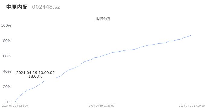 002448中原内配2024年04月29日成交13.93万手,成交金额9031.40万元,相较昨日放量1.61万手,换手率2.86%,成交清淡。