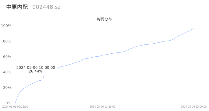 002448中原内配2024年05月06日成交16.11万手,成交金额1.09亿元,相较昨日放量1.42万手,换手率3.31%,成交清淡。