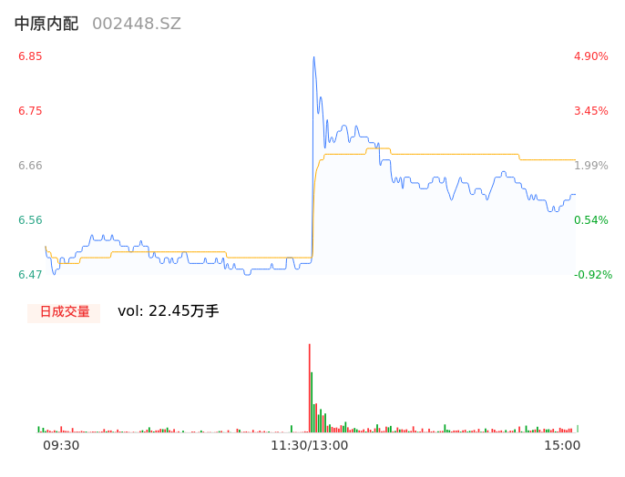 05月15日,中原内配收报6.59,股价涨幅0.92%,成交金额1.50亿元,换手率4.61%。