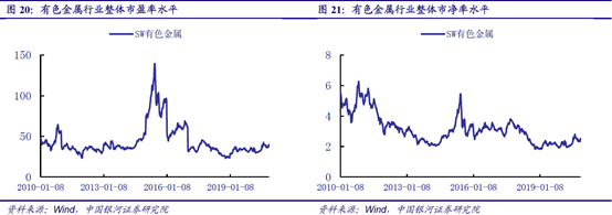 目前有色金属行业整体的市盈率为40x,市净率为2.51x,处于2010年以来的行业估值水平的平均值左右。而在全球经济反弹有色金属需求好转,金属价格上涨驱动企业业绩上行的支撑下,预计有色金属行业估值将进一步降低。