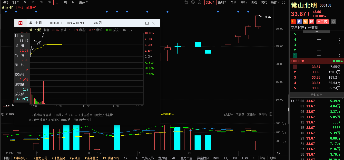 随着市场不断地往上走出趋势,最高涨幅的高新发展被资金继续抱团往上,锚定点就是行情没有结束,因此就是复杂顶部,早盘海能达分歧转一致之后,常山北明成为市场最强的高位容量股,资金已经抱团高位不出来