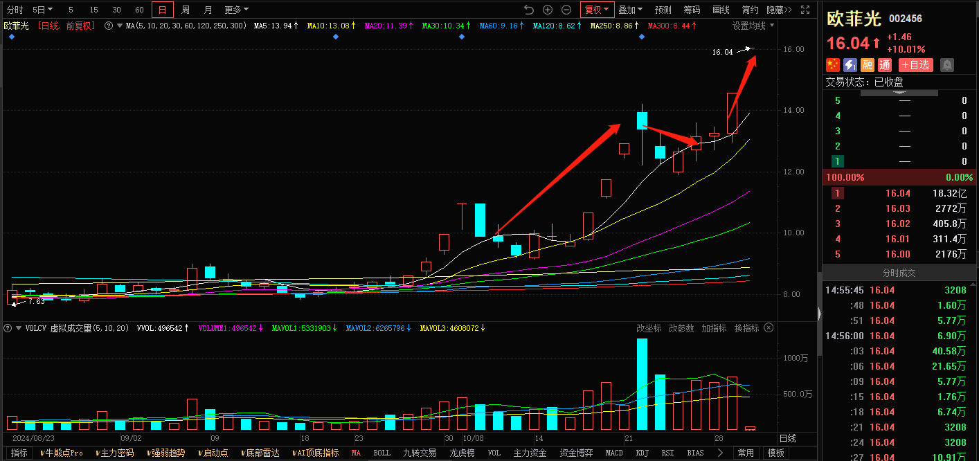 昨日分歧调整之时出来的新方向,生在恐慌之时,情绪回暖直接加速,比如欧菲光今天早上开出来就是大单一字涨停,且是从9.15之后不断上加,这就是明显受到多方力量的共振,进而在9.25之后直接大单一字往上打空间,盘中直接引爆消费电子板块