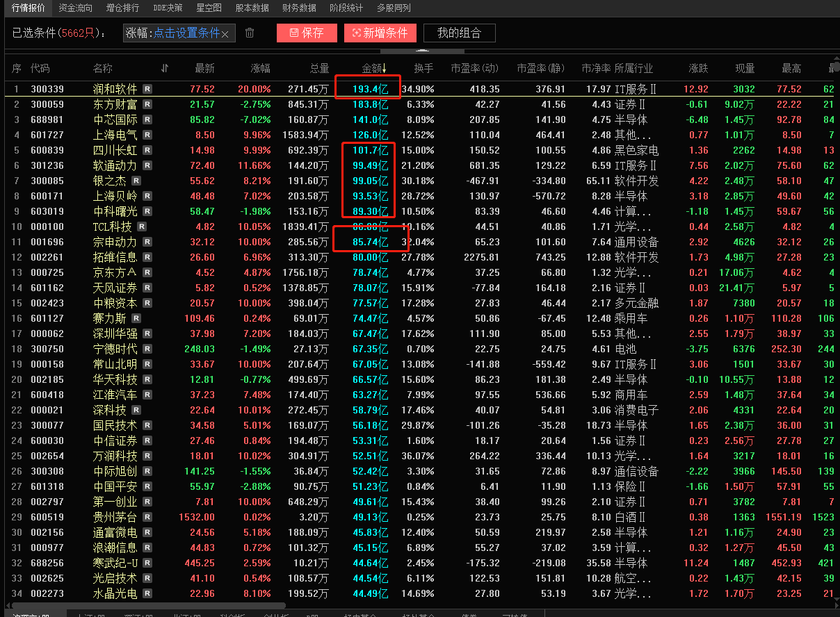 今日市场大成交直接走出加速修复的行情,市场整体的情绪依旧炸裂,不同的方向都有表现,润和软件百亿涨停,上海电气百亿涨停,四川长虹百亿涨停,市场的情绪依旧炸裂,只要后续市场维持住量能就可以继续看多,当然如果量能断崖式下跌的话,就要留意多杀多的可能性了,今日上涨与下跌家数对半,但是成交量缩量2155亿