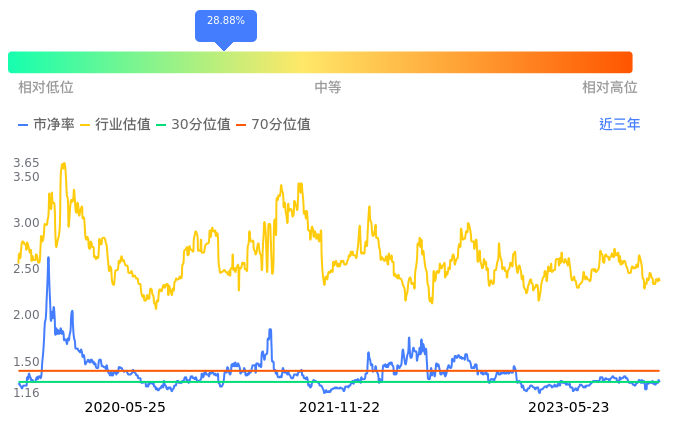 青龙管业当前市净率PB为1.32,在所属的装修建材中,市净率PB排9,前五名分别为北京利尔市净率0.87、方大集团市净率0.89、海螺新材市净率1.05、濮耐股份市净率1.20、垒知集团市净率1.22。青龙管业当前市净率PB为1.28,超过近3年28.88%的历史数据。