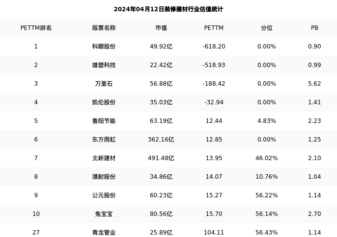 从估值角度看:青龙管业最新市盈率PETTM为104.11,在行业内排名23/35,处于56.43分位。