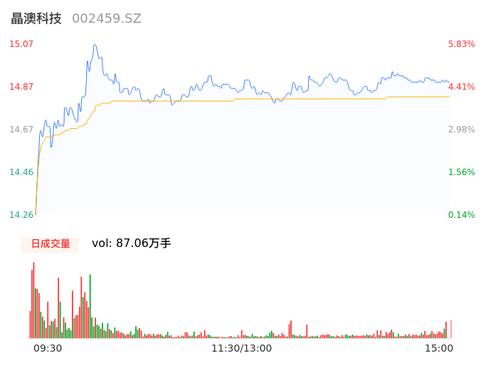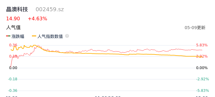 05月09日,晶澳科技收报14.90,股价涨幅4.63%,成交金额12.90亿元,换手率2.63%。