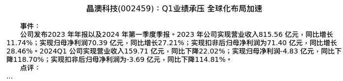 值得注意的是:2024年05月信达证券的武浩/黄楷分析师,首次发布关于晶澳科技的研究报告,标题为:晶澳科技(002459):Q1业绩承压 全球化布局加速。