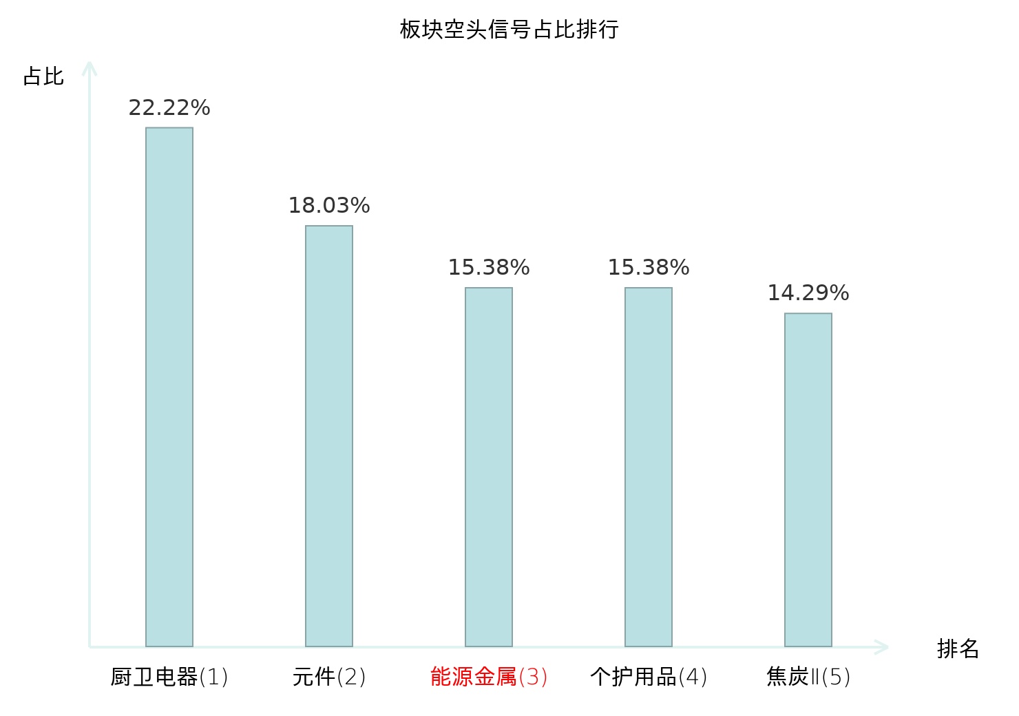 全市场所有行业板块中主力空头信号占比排名中,厨卫电器板块位居第一。光伏设备板块名次提升最快,较昨日上升111位。