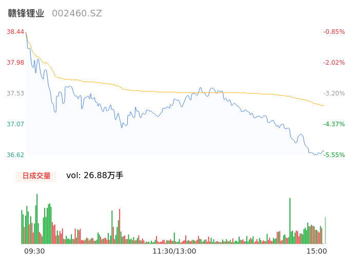 04月16日,赣锋锂业收报36.65,股价涨幅-5.47%,成交金额10.04亿元,换手率2.22%。