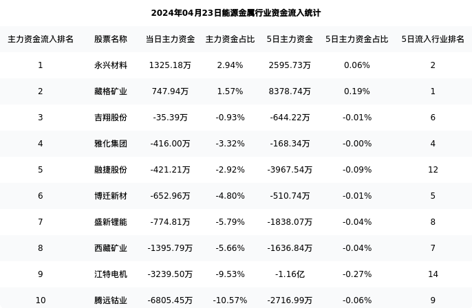 从主力资金流向来看,能源金属行业今日主力资金流入16.60亿元,在所有申万二级行业中排名:94/131。
