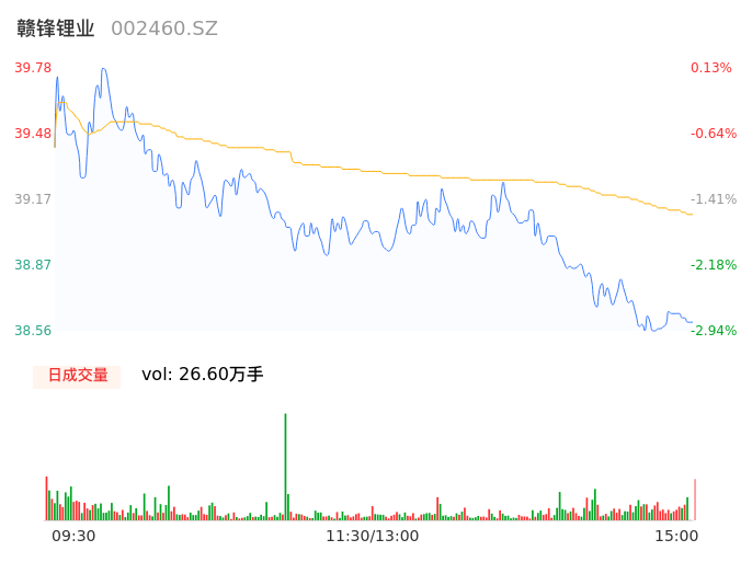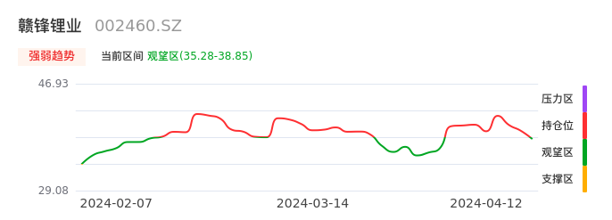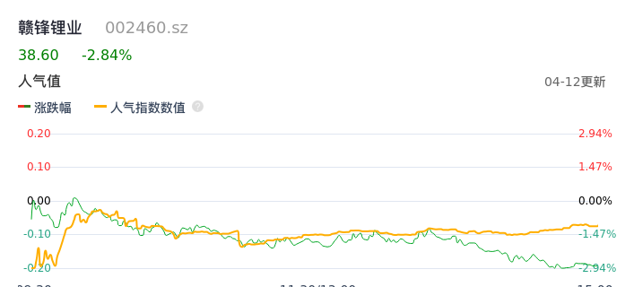 04月12日,赣锋锂业收报38.60,股价涨幅-2.84%,成交金额10.40亿元,换手率2.20%。